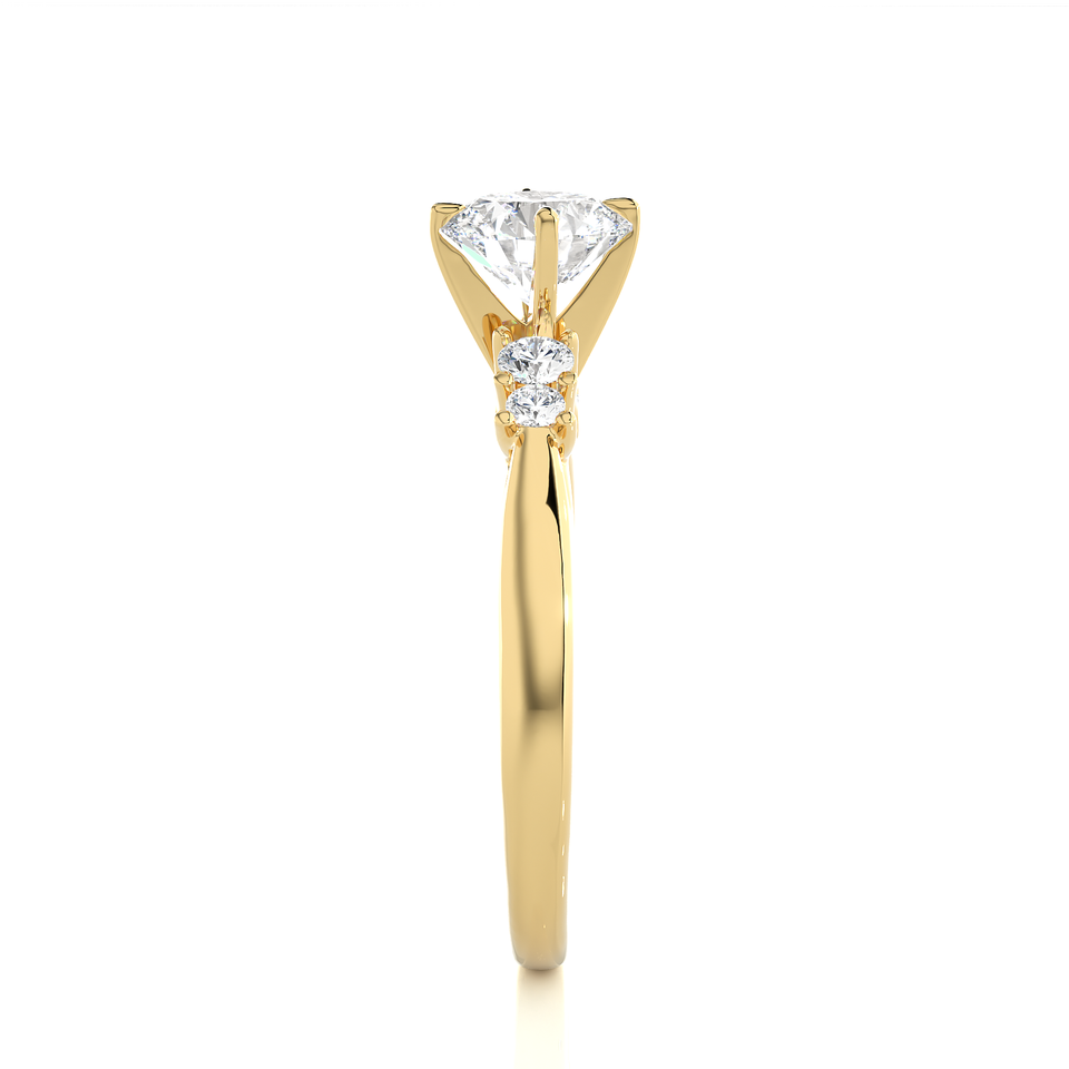 14k Yellow Solid Gold Engagement Ring with IGI GIA Certified Round Brilliant Cut Lab Grown Diamond