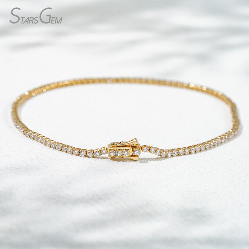 14k yellow gold diamond tennis bracelet lab grown 1.4mm round lab grown diamond tennis chain