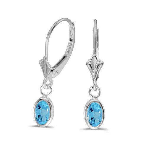 ต่างหูแฟชั่นทองคำขาว 14 กะรัต ประดับด้วยบลูโทปาซทรงรี 1.14 กะรัต ดีไซน์แบบเลเวอร์แบ็คในรูปทรงรีที่หรูหรา
