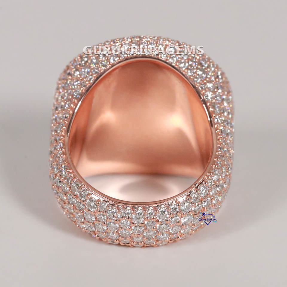 แหวนสีโรสโกลด์14kt สำหรับผู้ชายประดับเพชรด้วยเพชรหรูหราสัญลักษณ์สำหรับงานแต่งงานและงานปาร์ตี้