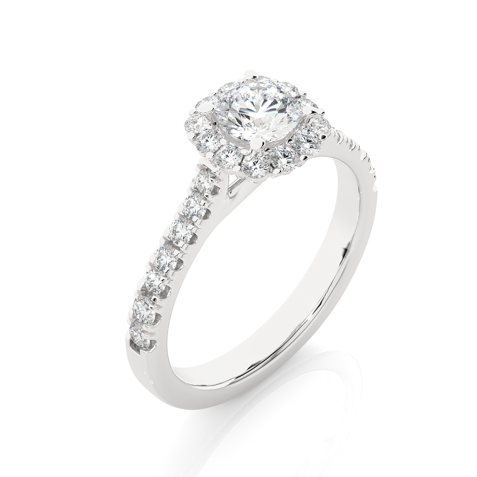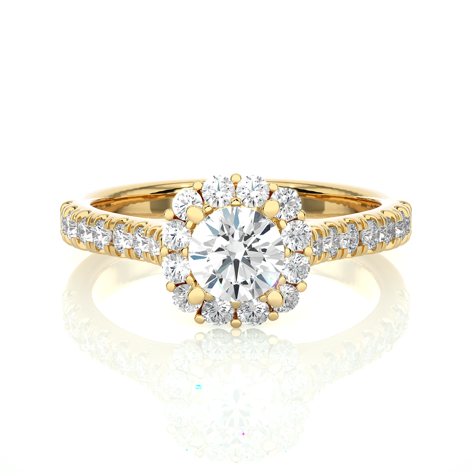 แหวนหมั้นรัศมีวงดอกไม้สีเหลืองทอง14kt พร้อมด้วยเพชรตรงกลางที่สวยงามแลปหินปลูกในงานแต่งงาน