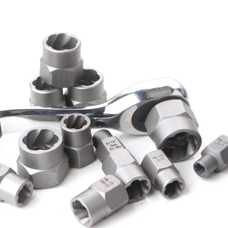 14ชิ้น/เคสตัวแยกน็อตน็อตน็อตแบบกดถอดสลักเกลียวแตกชุดเครื่องมือกล่องเก็บของกันขโมยปลอกเหล็ก Cr-Mo