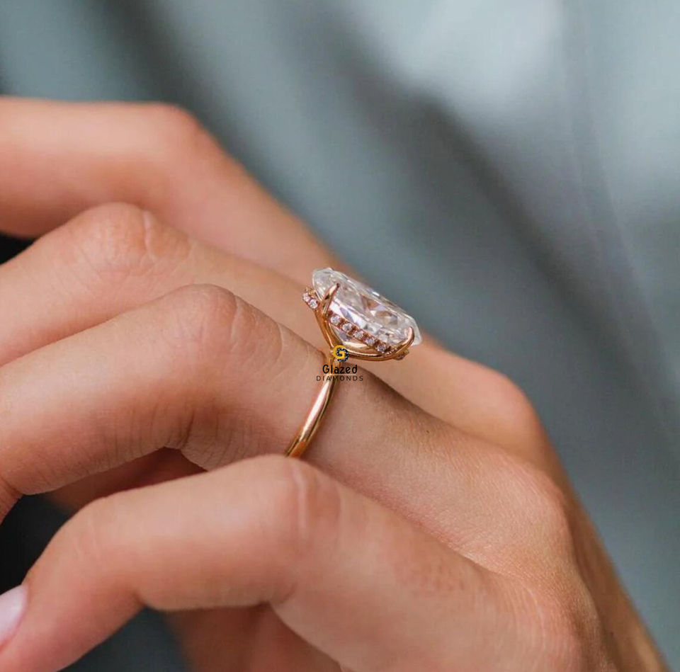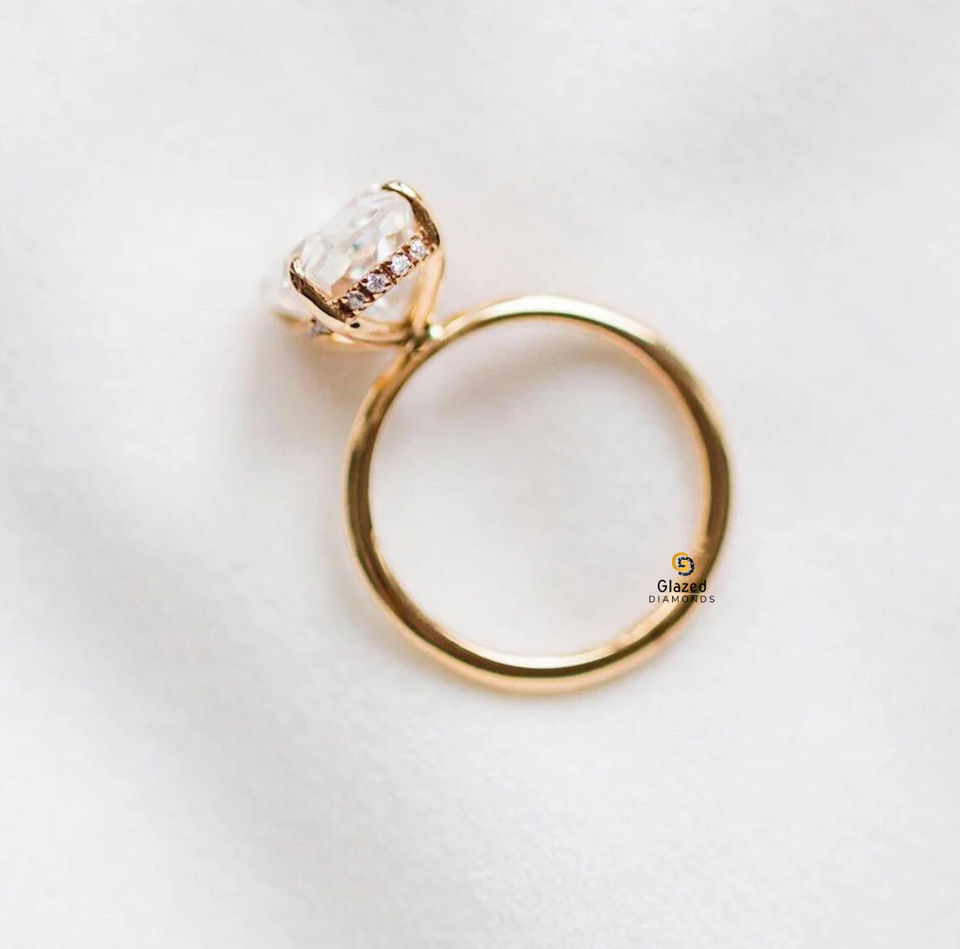 14X11มม. เพชรรูปวงรีตัด Moissanite VVS ชัดเจนแหวนดารา Bieber รัศมีที่ซ่อนอยู่สำหรับผู้หญิงในทองคำ10K สีเหลือง