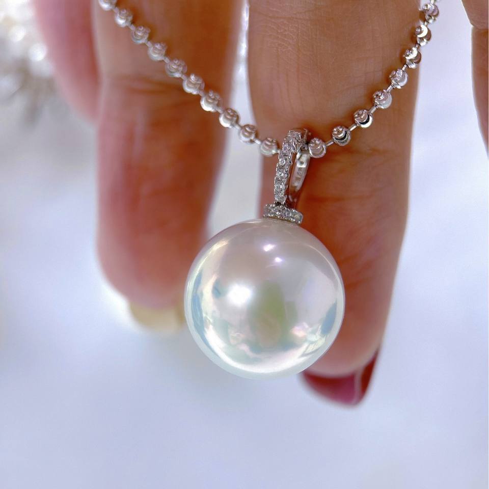 จี้มุกน้ำจืดทรงดราก้อนบอลขนาด 15-16 มม. พร้อมสร้อยเงินแท้ S925 ยาว ประดับหางมนุษย์ระยิบระยับ