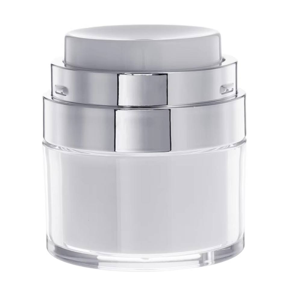 ขวดครีมบำรุงผิวหน้าขนาด 15/30/50/100 มล. ฝาสีเงิน/ทอง/ขาว วัสดุ AS+PP+ABS ขวดปั๊มสุญญากาศ พิมพ์ซิลค์สกรีน