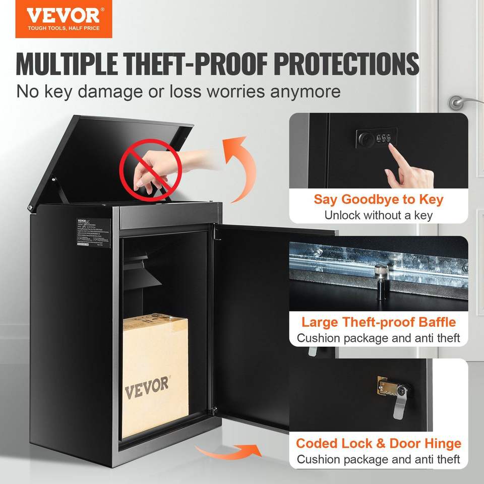 กล่องรับพัสดุขนาด 15.4 นิ้ว x 10.6 นิ้ว x 20.5 นิ้ว กล่องจดหมายติดผนังเหล็กชุบสังกะสี พร้อมรหัสล็อค ป้องกันการโจรกรรม ช่องเก็บของ