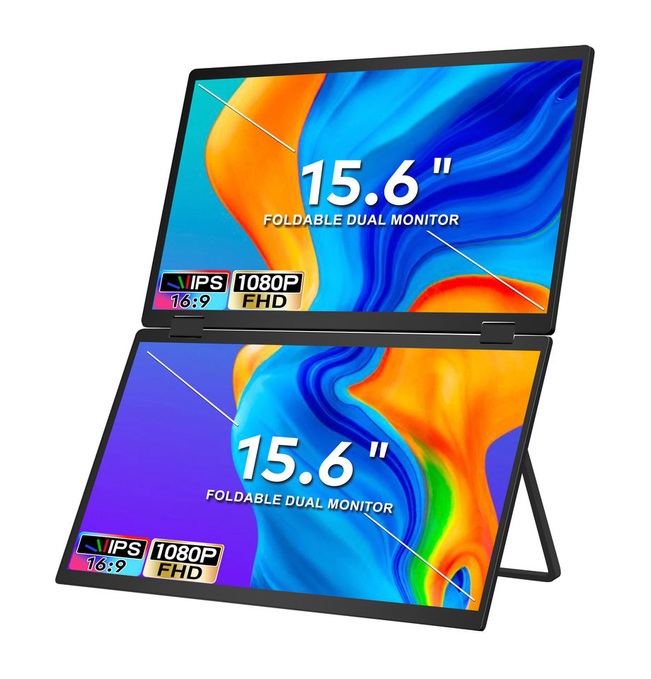 15.6 "จอภาพคู่พับซ้อนกันจอมอนิเตอร์แบบพกพาคู่สำหรับแล็ปท็อป/คอมพิวเตอร์ตั้งโต๊ะ/โทรศัพท์/สวิตช์/กล่องหนึ่ง/PS4 5เล่นเกม