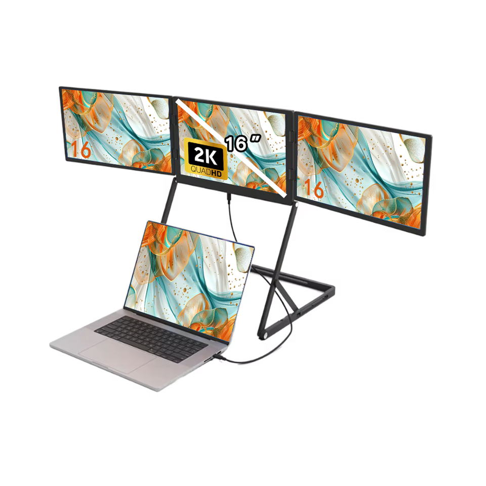จอขยายแล็ปท็อปขนาด 16 นิ้ว 2.5K แบบพับซ้อนสามจอ (รองรับ Wins/Mac) พอร์ต USB C สำหรับพกพา ขยายหน้าจอคอมพิวเตอร์ Windows Mac