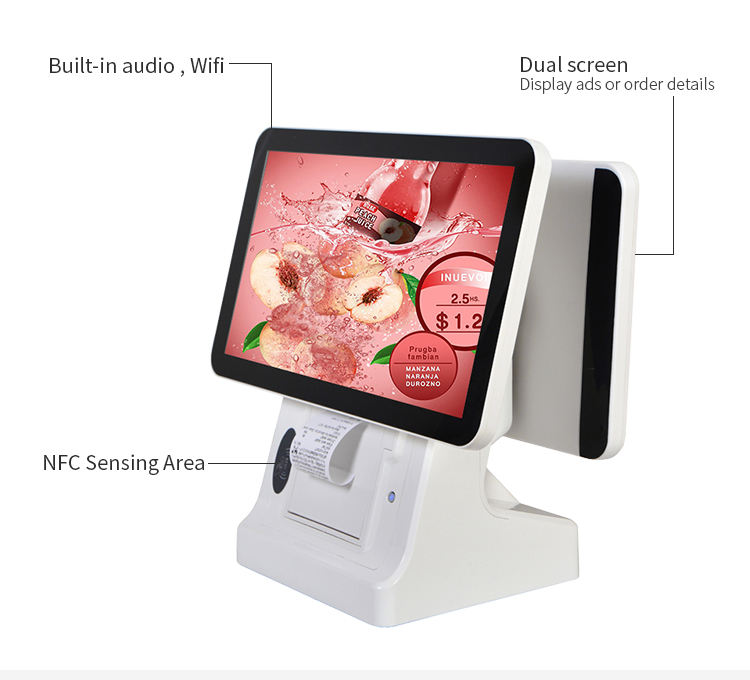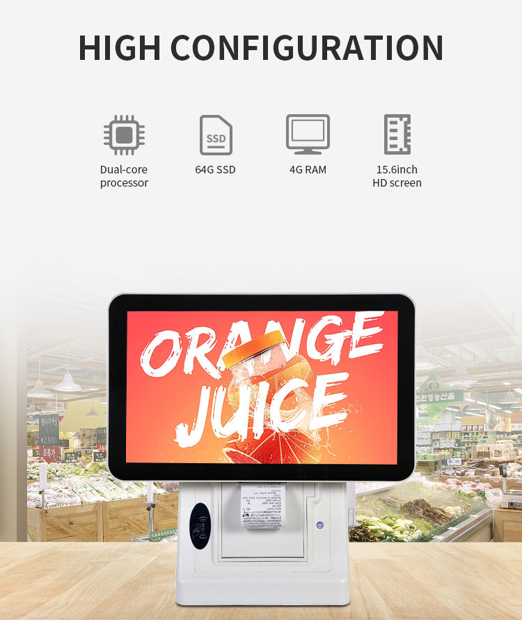 15.6นิ้ว1366X768 True จอแบน TFT LCD หน้าจอคู่ Capacitive สัมผัสทั้งหมดในหนึ่งระบบ Pos สำหรับร้านค้าปลีก