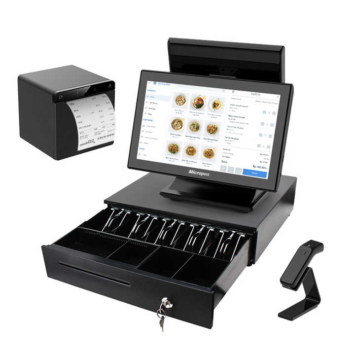 เครื่องบันทึกเงินสดหน้าจอสัมผัสคู่ขนาด 15.6 นิ้ว All In One Android Pos เครื่องพิมพ์ POS + windows ระบบแท็บเล็ต pos พร้อมเครื่องพิมพ์