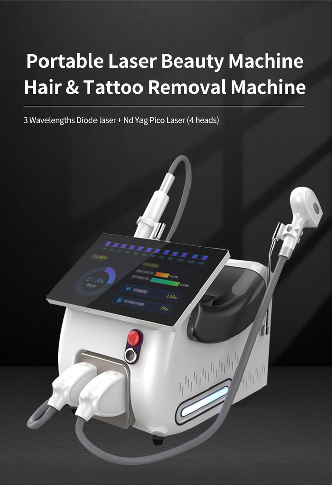 เครื่องเลเซอร์ไดโอดแบบพกพา 2-in-1 หน้าจอสัมผัสขนาด 15.6 นิ้ว พร้อมความยาวคลื่น 808/755/1064 นาโนเมตร สำหรับกำจัดขนถาวร