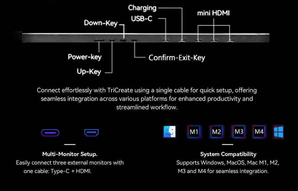 จอภาพพกพาแบบสามจอขนาด 15.6 นิ้ว น้ำหนักเบาและบางเฉียบ ใช้สายเคเบิลเพียงเส้นเดียวสำหรับ 3 จอภาพ ความละเอียด 1080P แบบเสียบแล้วใช้งานได้ทันที รองรับ Windows / Mac