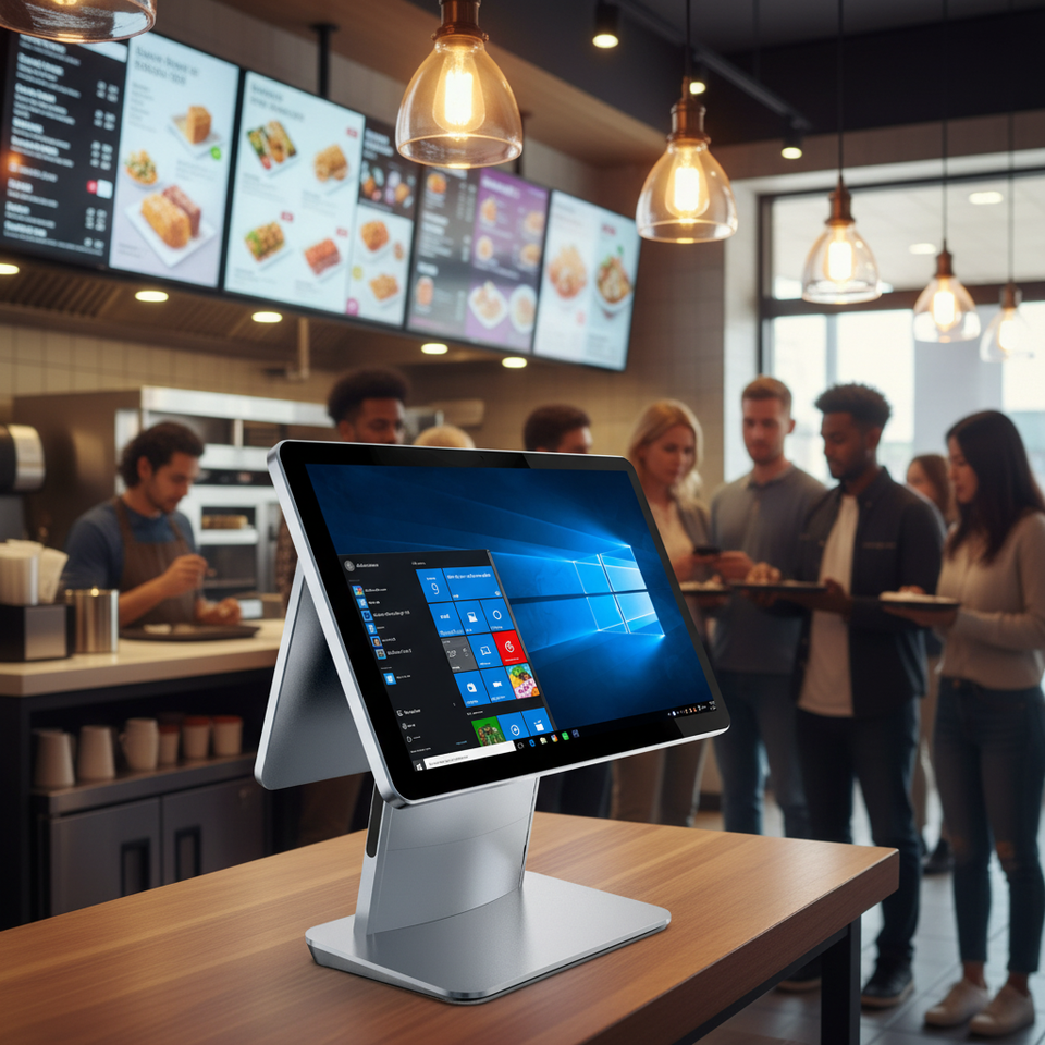 เครื่องบันทึกเงินสด POS ขนาด 15.6 นิ้ว ขายตรงจากโรงงาน ระบบ POS แบบรวมตัวในตัวทำจากอะลูมิเนียมอัลลอย เหมาะสำหรับโรงแรมและร้านกาแฟ