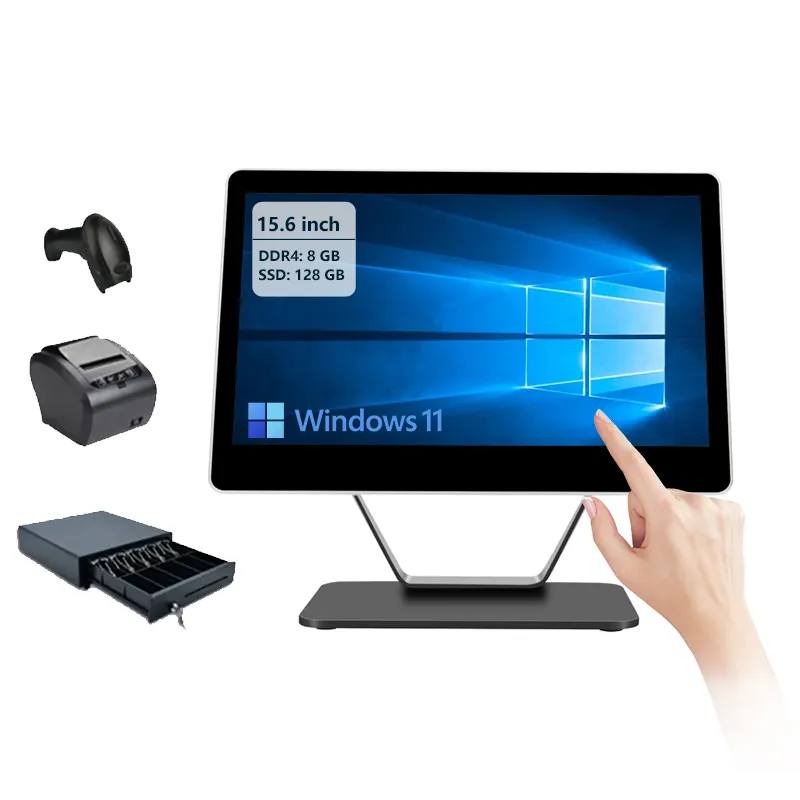15.6inch Mobile POS Terminal with 10-Point Capacitive Touch Screen Android/Windows OS NFC Thermal Printer 1-Year Warranty