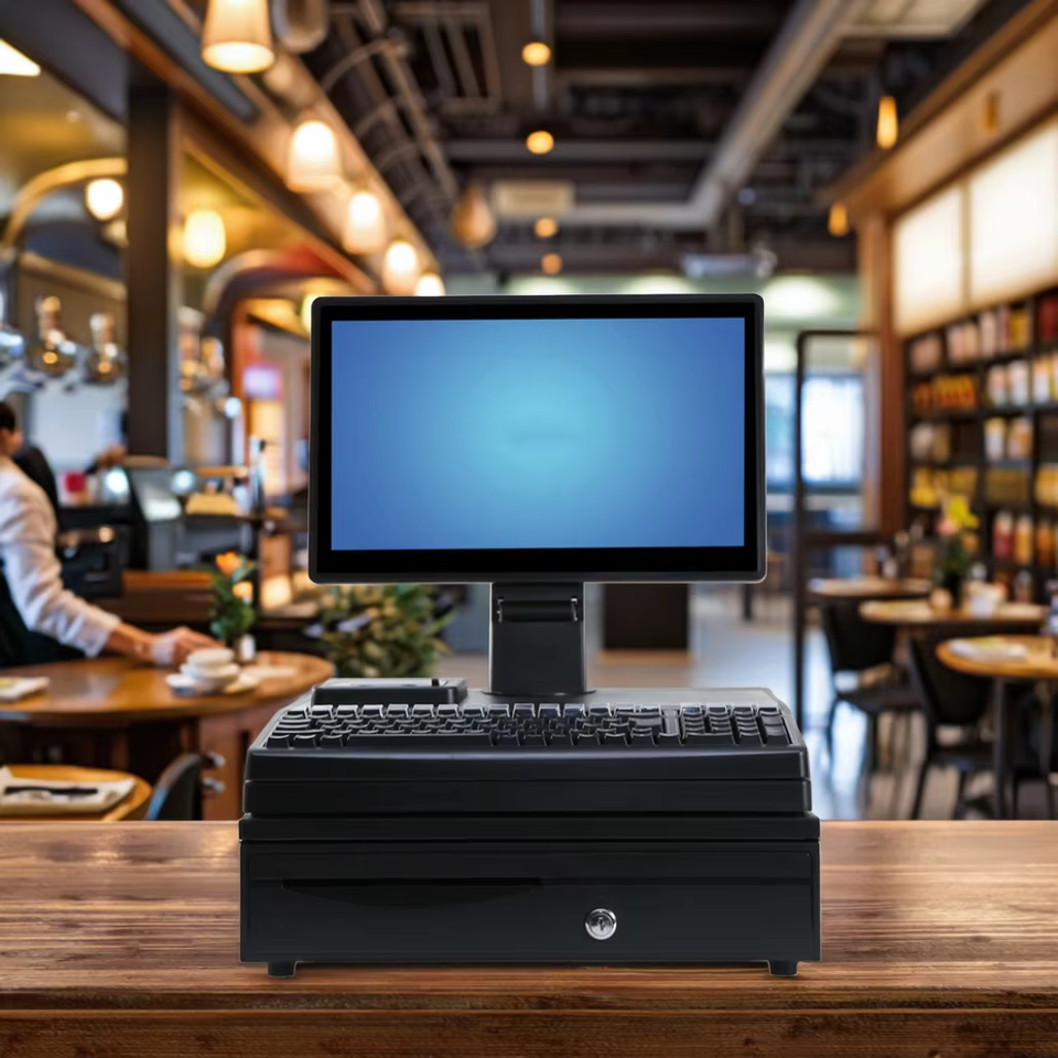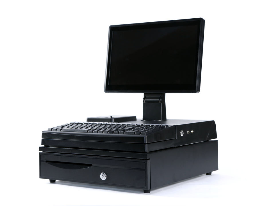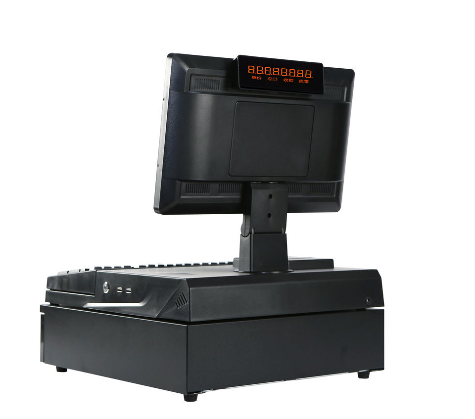 เครื่องพีโอเอสขนาด15.6นิ้วเครื่องพีโอเอสหน้าจอเดียว4 + 64กิกะไบต์พร้อมเครื่องพิมพ์คีย์บอร์ดในตัวลิ้นชักเก็บเงินสด