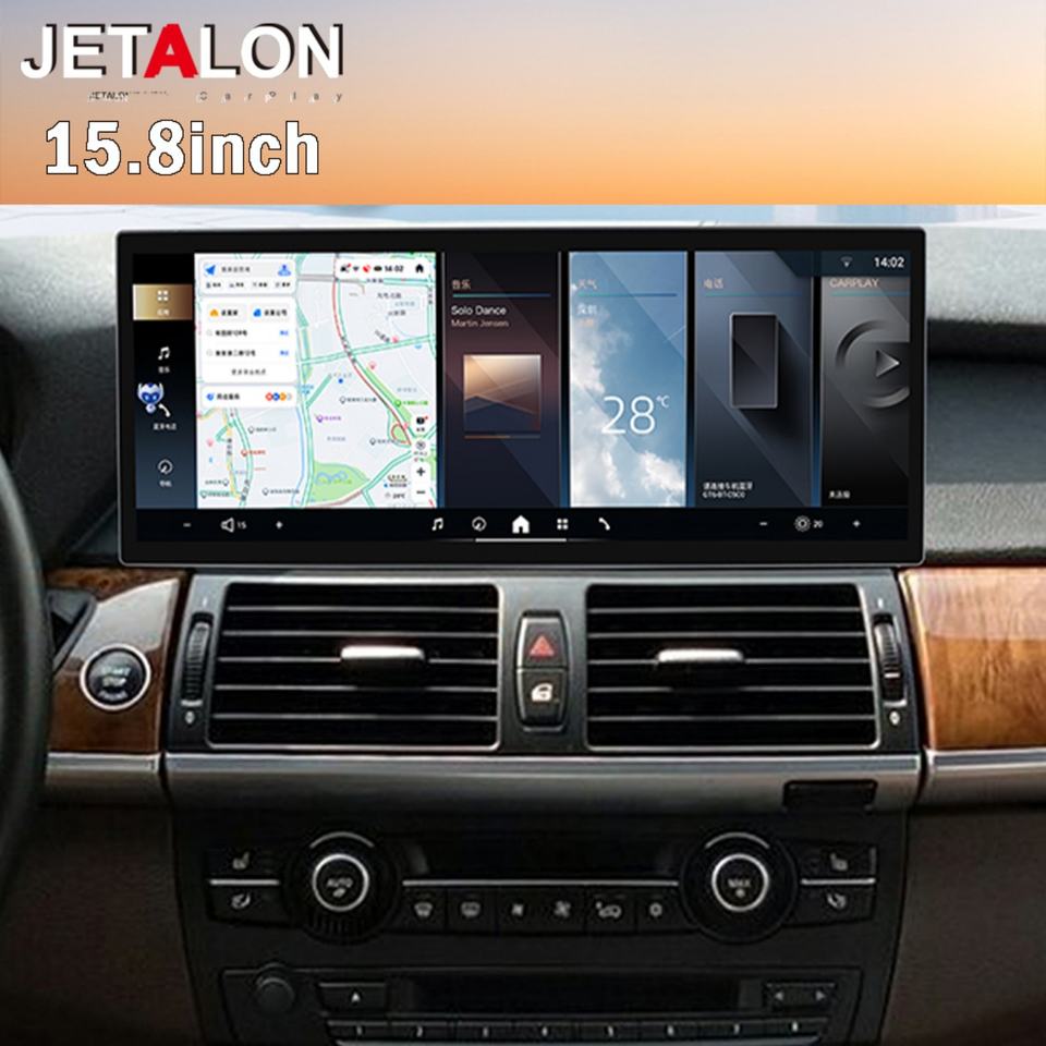 เครื่องเล่นวิดีโอระบบแอนดรอยด์15.8นิ้ว15 DSP AHD สเตอริโอ GPS หน้าจอนำทางสำหรับ BMW X5 2007-2009 CarPlay วิทยุรถยนต์อัตโนมัติ4G WIFI