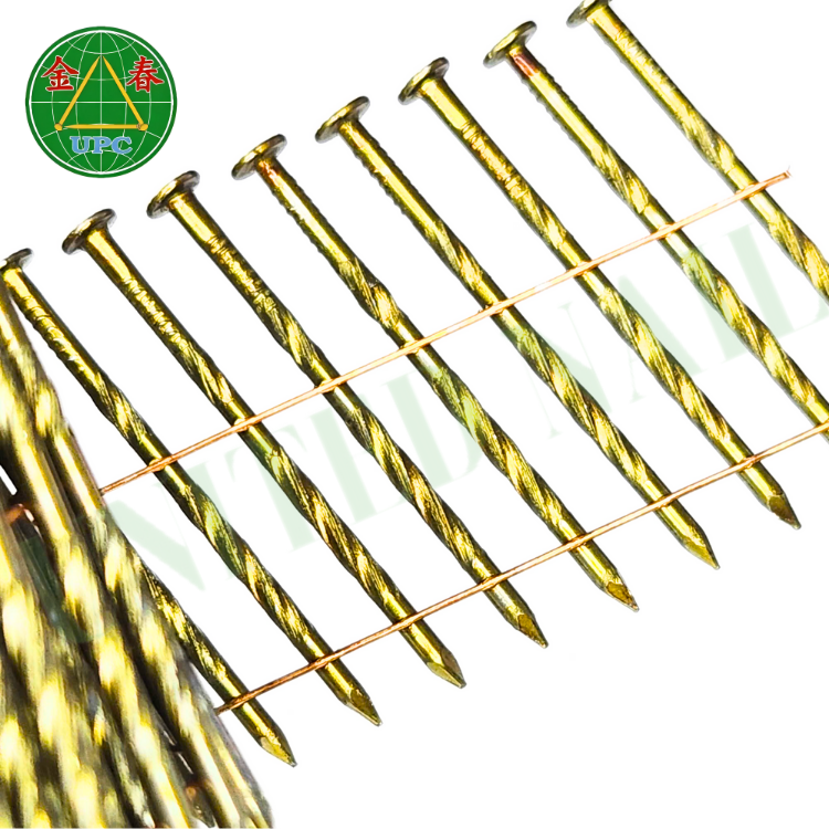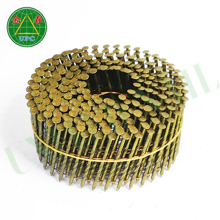ตะปูเกลียวลวดเหล็ก15องศาขนาด1-1/4นิ้วพร้อมแหวนเคลือบสีเหลืองลวดเหล็ก OEM 14000ชิ้น/เรียบ/สกรูก้านแบบเกลียวชนิดจากเวียดนาม
