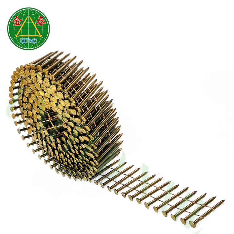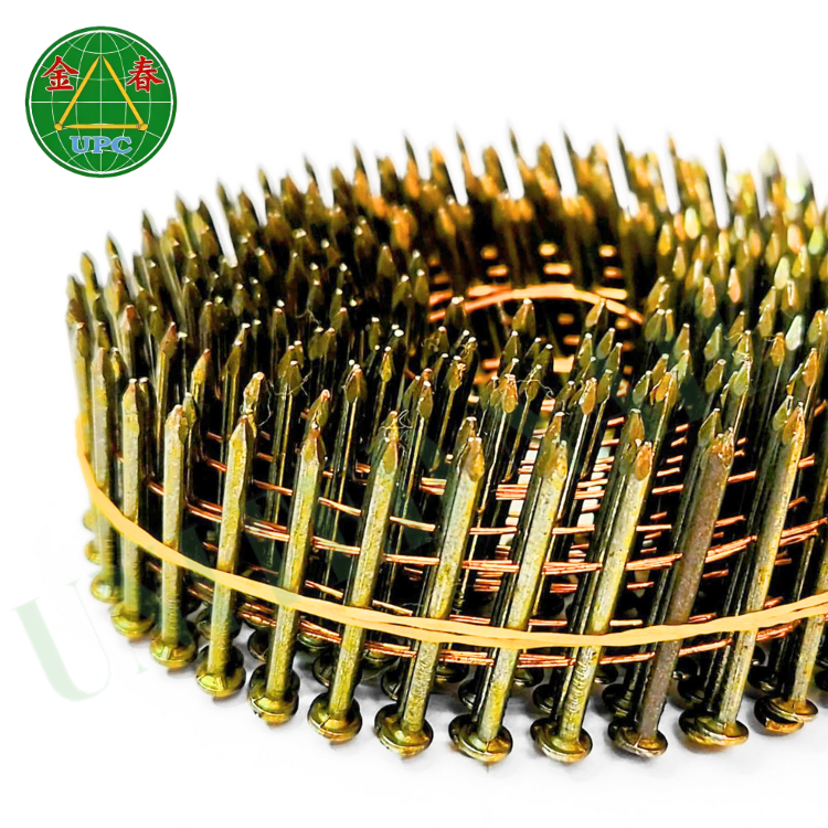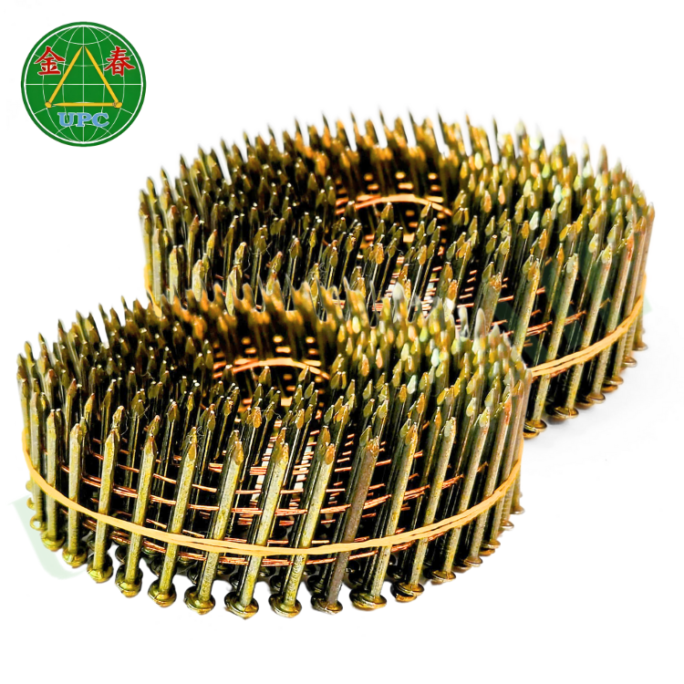ตะปูม้วน15องศา1-3/4 "x 0.086 9000ชิ้นเคลือบสีเหลืองสไตล์ก้านเรียบและแข่งขันกับโรงงานจากเวียดนาม