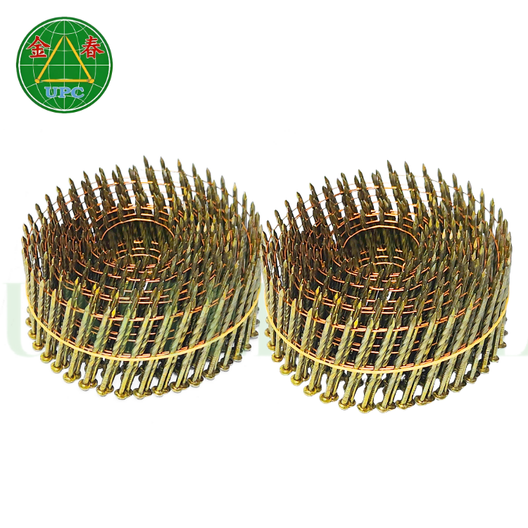 ตะปูคอยล์โอเอ็ม15องศา1-1/4 "14000ชิ้นก้านวงแหวน/เรียบ/สกรูสำหรับขดลวดนิวเมติกเคลือบสีเหลืองจากเวียดนาม