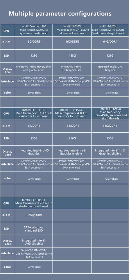 CPU:Intel I3-10110U/ I5-10210U/ I7-10710U