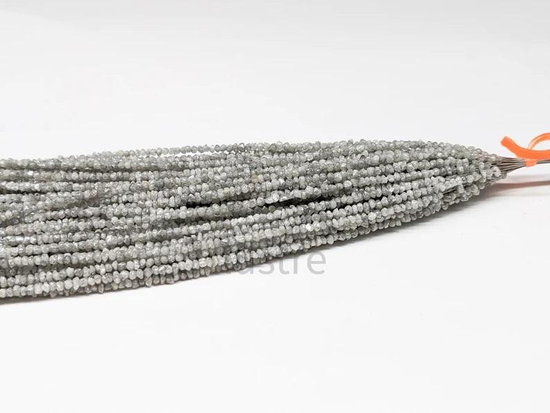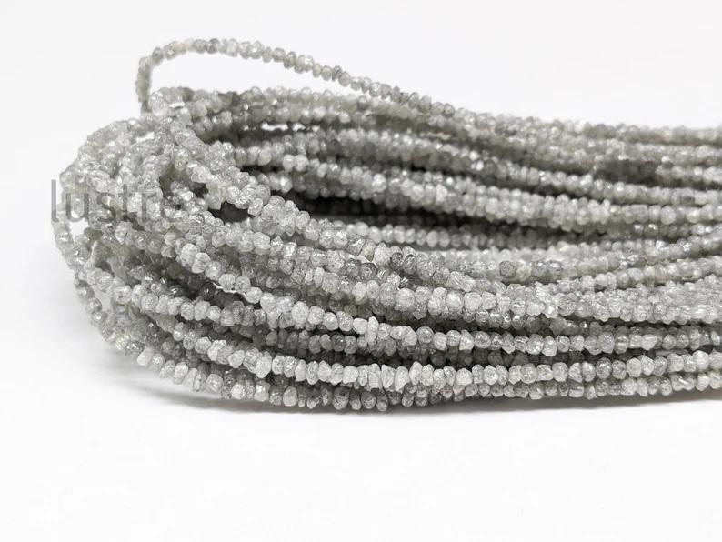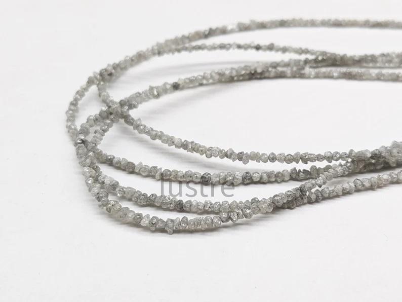 ลูกปัดเพชรสีขาวแบบไม่เจียระไนลูกปัดเพชรหยาบแบบหยาบทำมือของขวัญกับชิปเพชรสีเทาลูกปัดหินยาว
