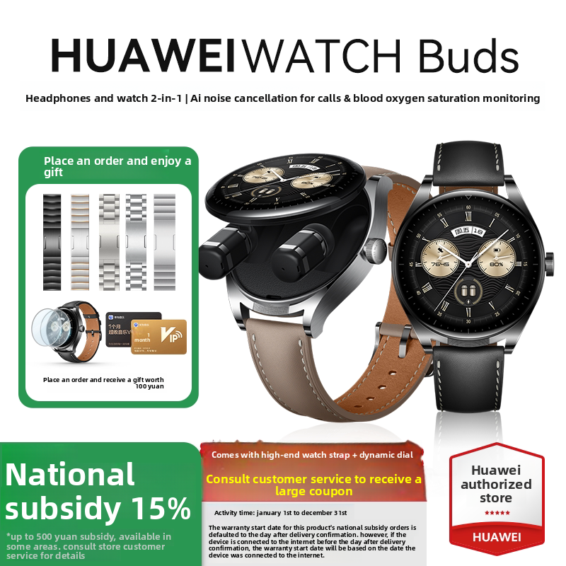 [เงินอุดหนุนแห่งชาติ 15%] สำหรับนาฬิกาอัจฉริยะ Watch Buds หูฟังในตัว ลดเสียงรบกวนด้วย AI รองรับการโทร ออกกำลังกาย วัดค่าออกซิเจนในเลือด