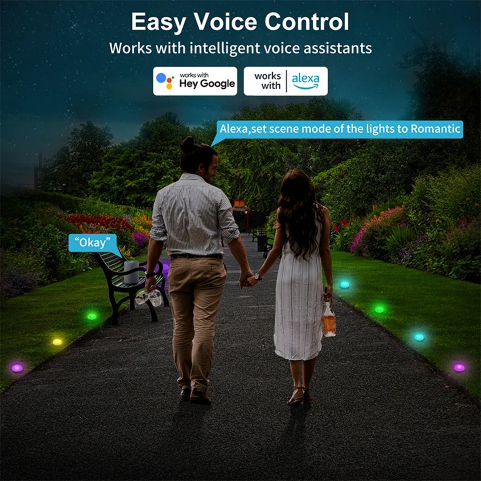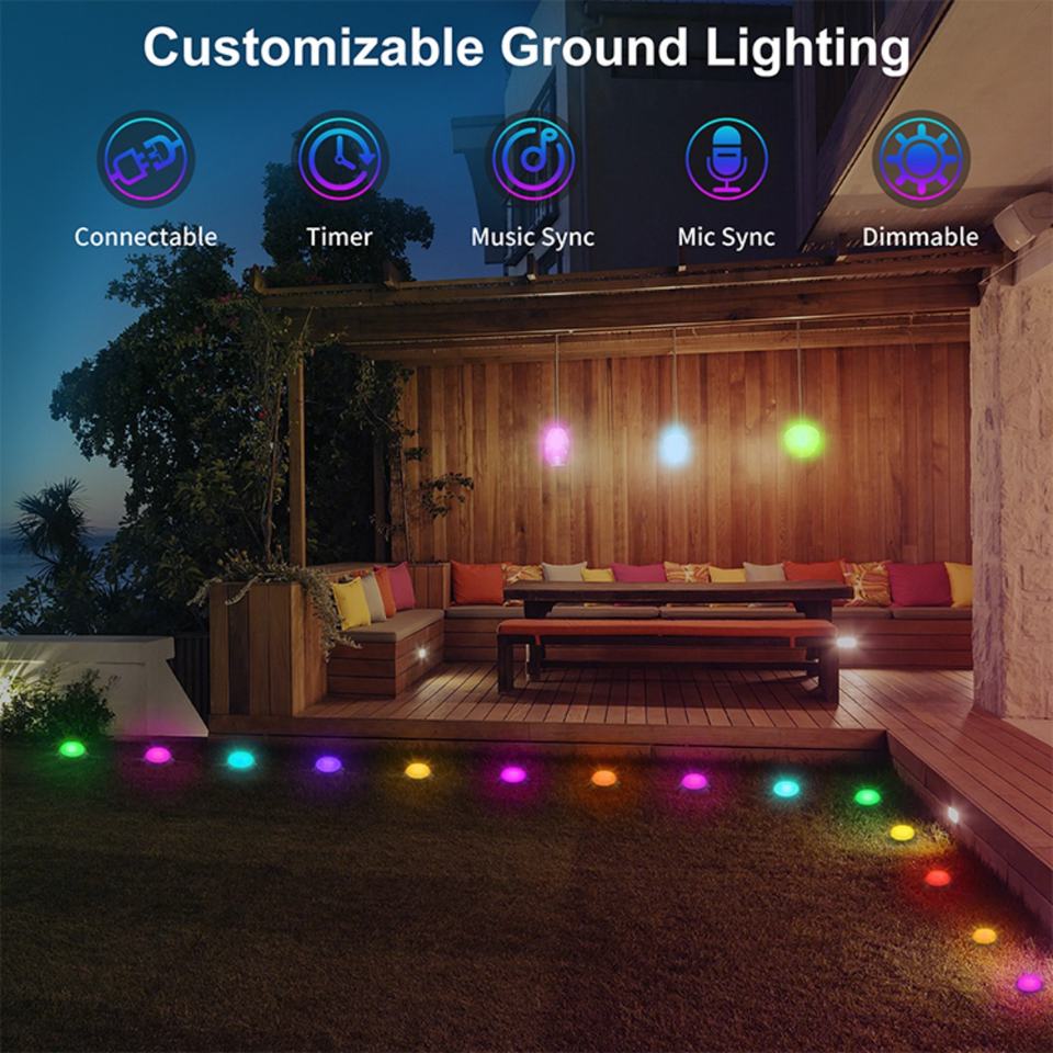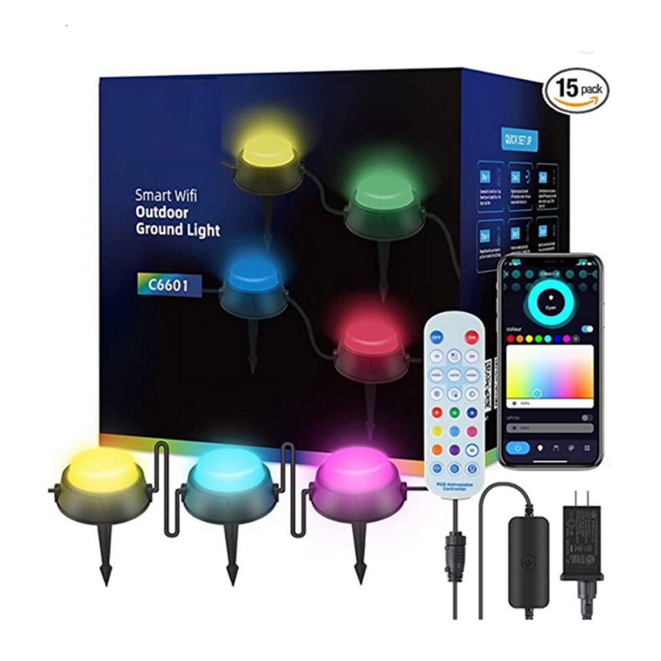 15 Pack Smart Tuya App Control RGBICW Music Sync Pathway Lights,Ground Lights,Outdoor Lawn Light for Garden, Yard, Patio,Decor