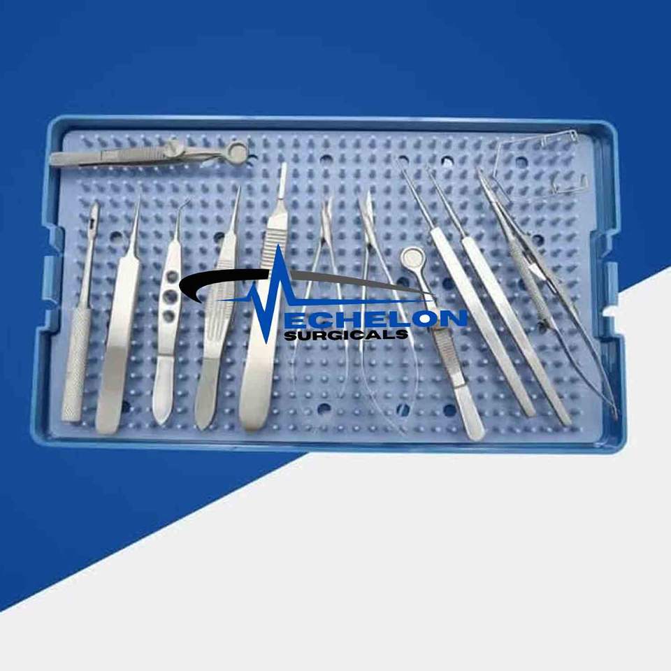 ชุดเครื่องมือผ่าตัดตาสำหรับโรคตาขาวและตาขุ่น 15 ชิ้น พร้อมถาดฆ่าเชื้อแบบแมนนวล ถาดสแตนเลสเกรดเยอรมัน