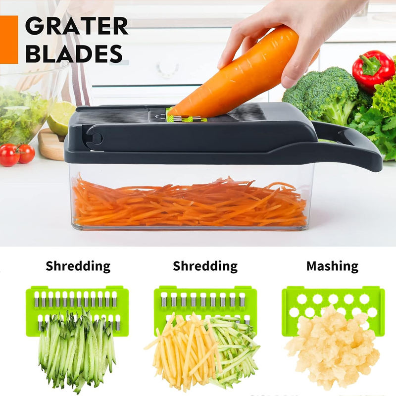 ชุดอุปกรณ์ครัวอเนกประสงค์ 15 ชิ้น เครื่องหั่นผักพลาสติกแบบใช้มือ เครื่องตัดผักผลไม้ มันฝรั่ง ที่ขูด