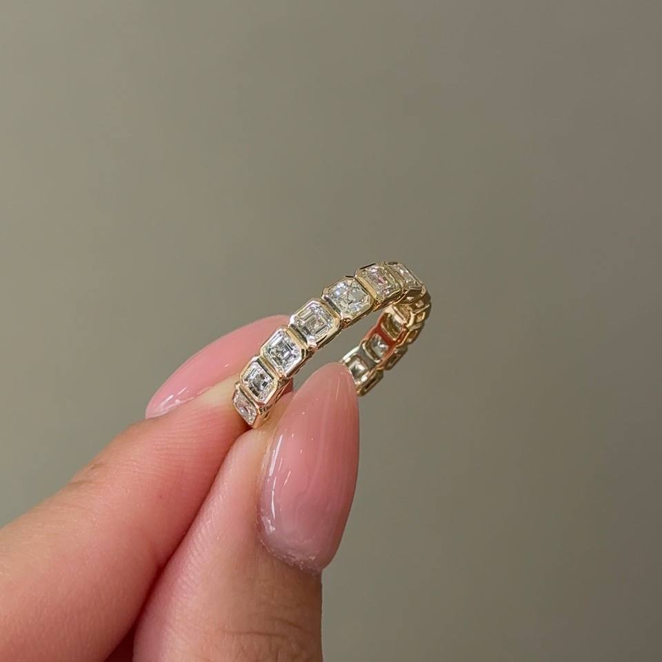 แหวนทองคำ 14k ประดับเพชรทรง Asscher Cut 15 เม็ด แบบครึ่งวงรอบ