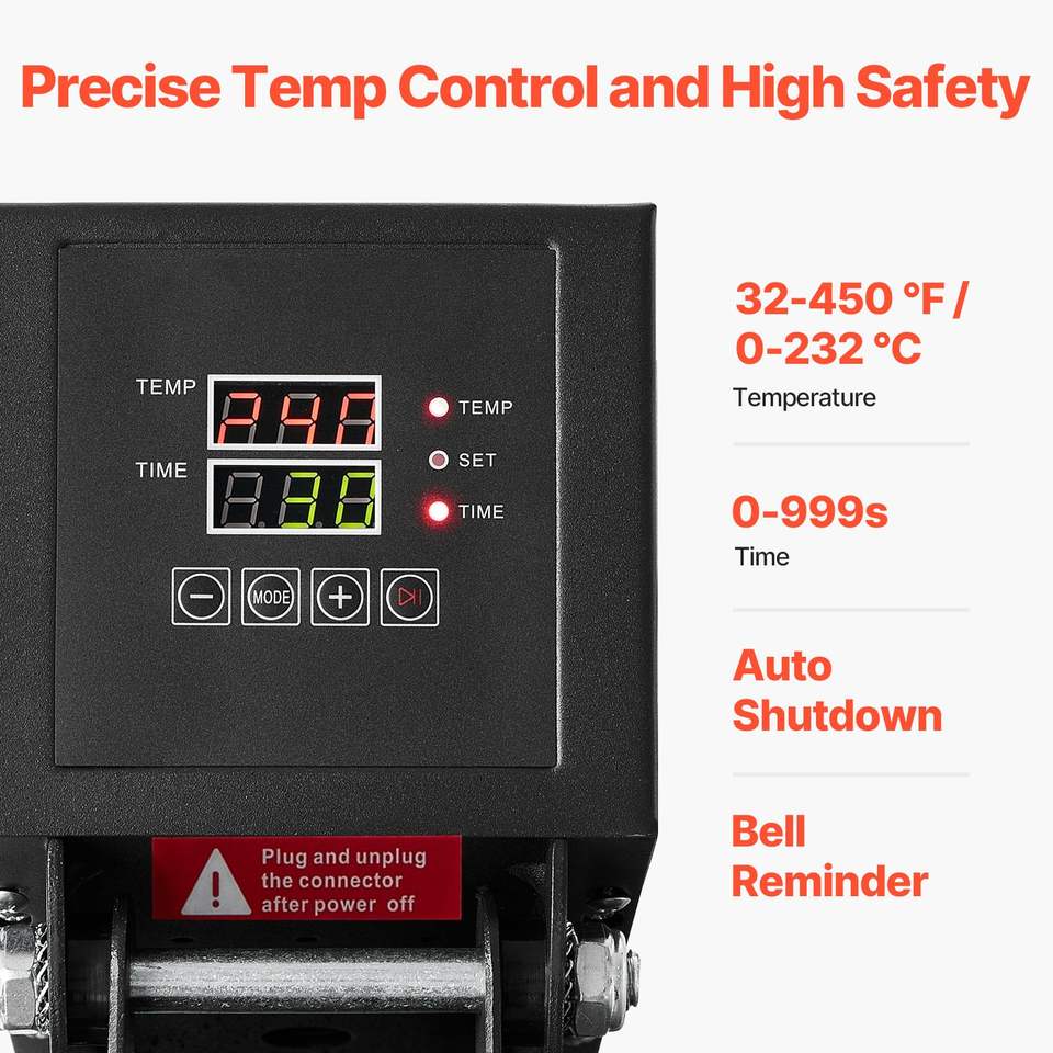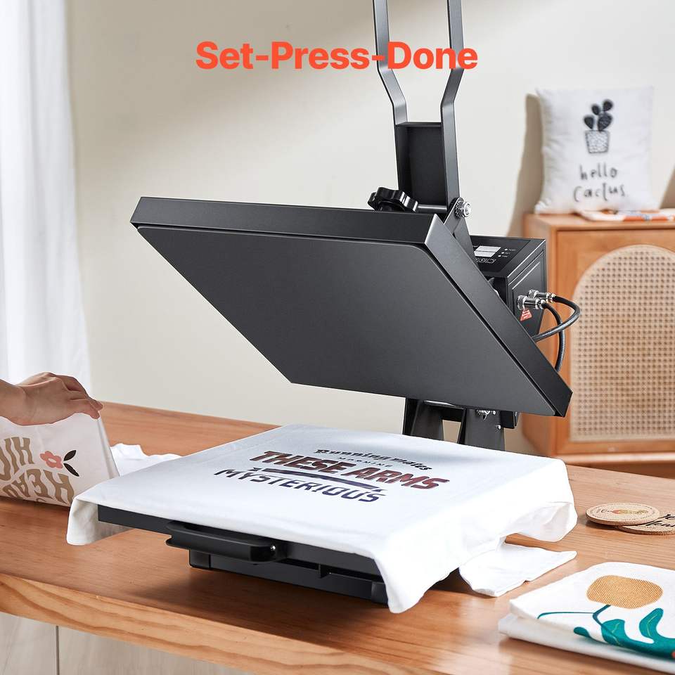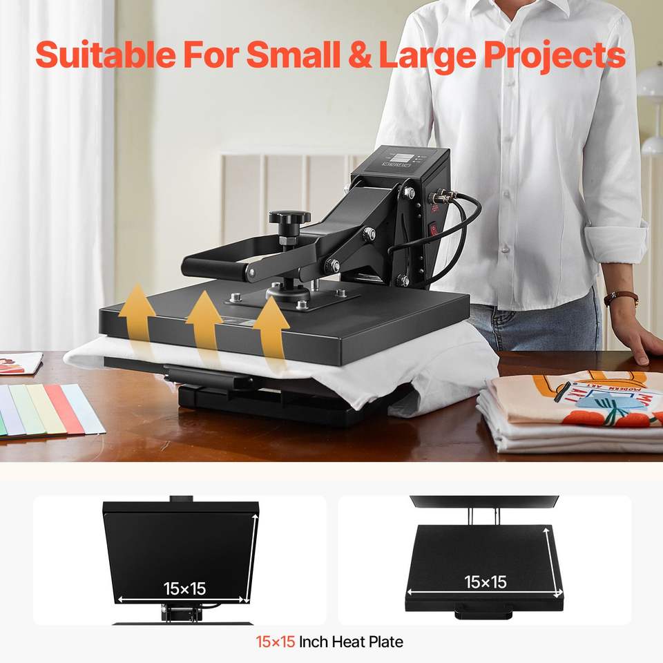 เครื่องรีดร้อนขนาด 15 x 15 นิ้ว ให้ความร้อนเร็วและสม่ำเสมอ แรงดันสูง ดีไซน์อุตสาหกรรมแบบดิจิทัล ใช้งานง่ายสำหรับเสื้อยืด