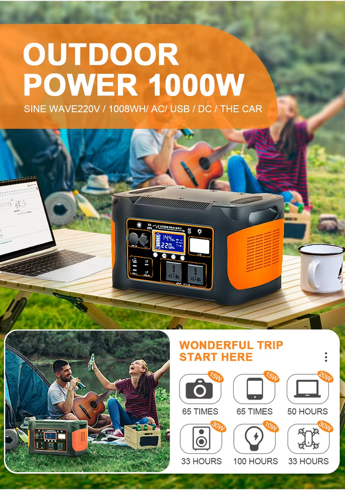 สถานีไฟฟ้า 1500W LiFePO4 MPPT เครื่องกำเนิดไฟฟ้าพลังงานแสงอาทิตย์แบบพกพา คลื่นไซน์บริสุทธิ์ พร้อมไฟฉาย ใช้ได้กับรถยนต์