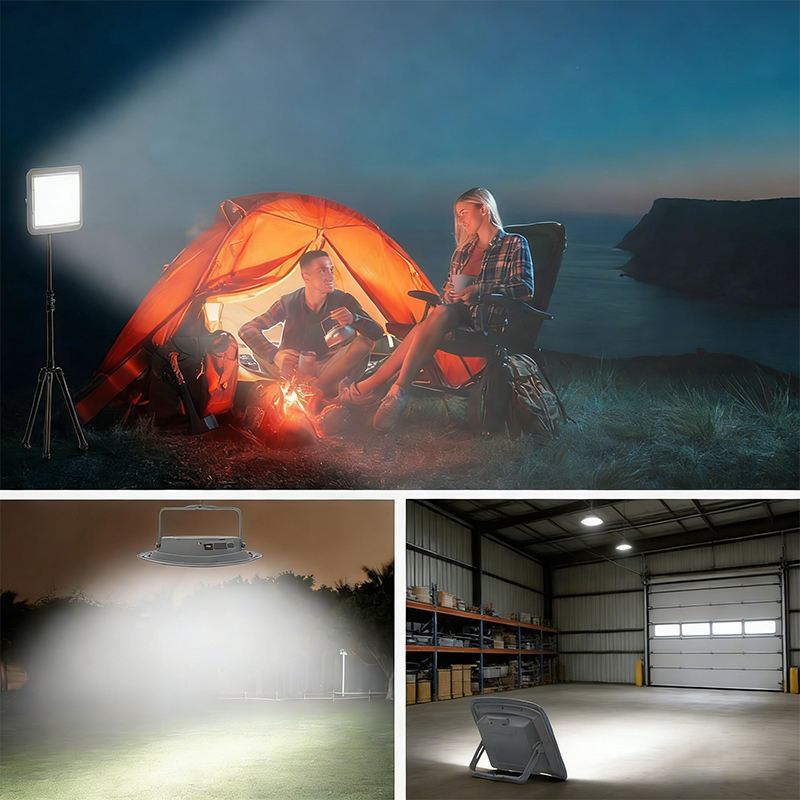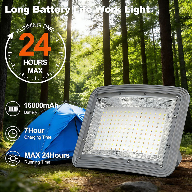 ไฟทำงาน LED พลังงานแสงอาทิตย์แบบชาร์จได้ 150W 15000LM ความจุแบตเตอรี่ 16000mAh แผงโซลาร์คู่ ปรับความสว่างได้แบบไม่มีขั้นตอน กันน้ำระดับ IP65 ไฟตั้งพื้นแบบพกพา