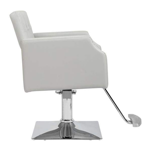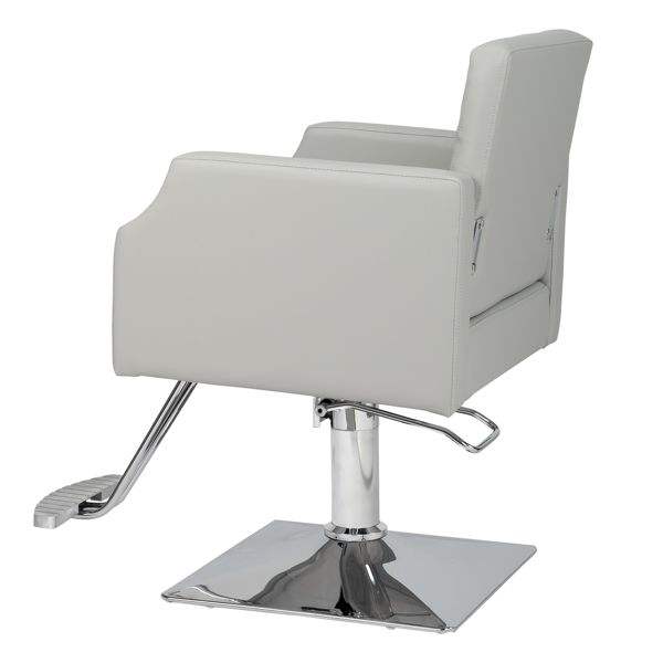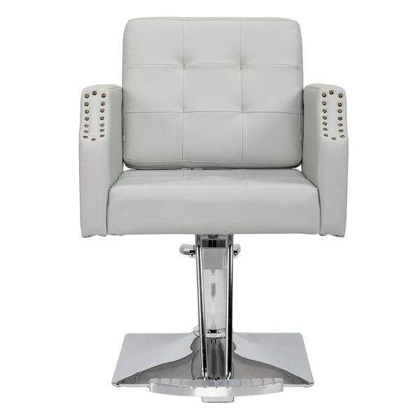 เก้าอี้ตัดผมหนังพีวีซีสีเทาและอลูมิเนียมอัลลอยด์150กก. มีปั๊มน้ำมันสูงที่พักเท้าแบบหมุดย้ำทนทานทันสมัย