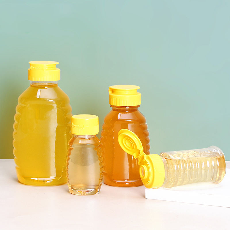 ขวดน้ำผึ้ง PET ขนาด 150 มล. 250 มล. 360 มล. 500 มล. 1000 มล. ขายส่ง ขนาดตามสั่ง พร้อมฝาอลูมิเนียม ขวดบรรจุอาหารเกรดอาหารสำหรับแยม