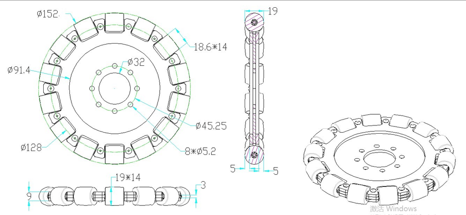 ล้อโลหะ OMNI 152มม. (เจาะ32มม.) ก้านหุ่นยนต์ WCP FTC FRC
