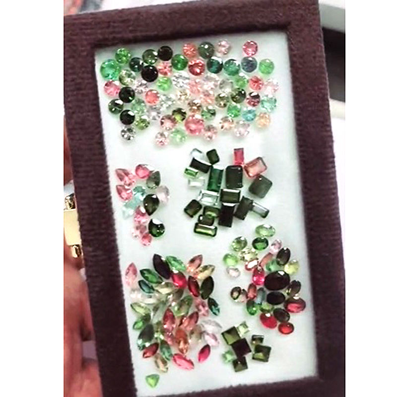 พลอยทัวร์มาลีนธรรมชาติ 155 ชิ้น ขนาด 5x3 6x4 7x5 มม. รูปทรงลูกแพร์ รูปไข่ รูปบาแกตต์ รูปมาร์ควิส 4 5 มม. ทรงกลม น้ำหนัก 71 กะรัต ขายส่งจาก Iroc sales gemstone ราคา 150 ดอลลาร์สหรัฐ