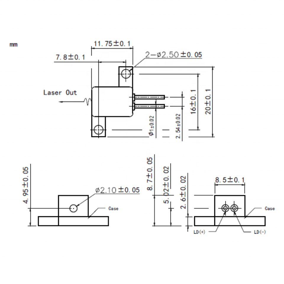 1550nm 2.5W Fiber Laser Diode 2-Pin Package
