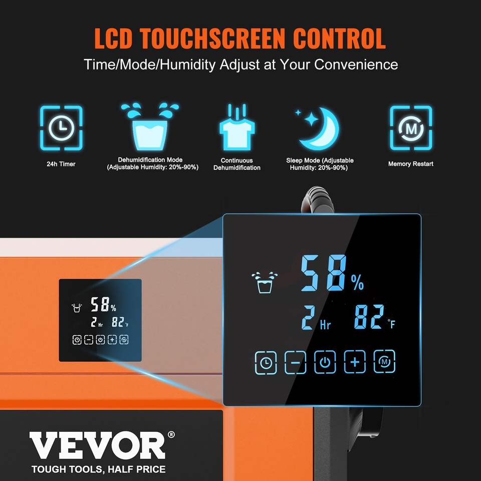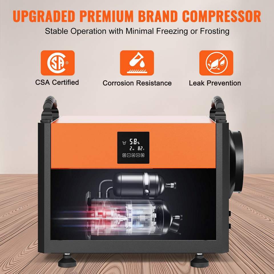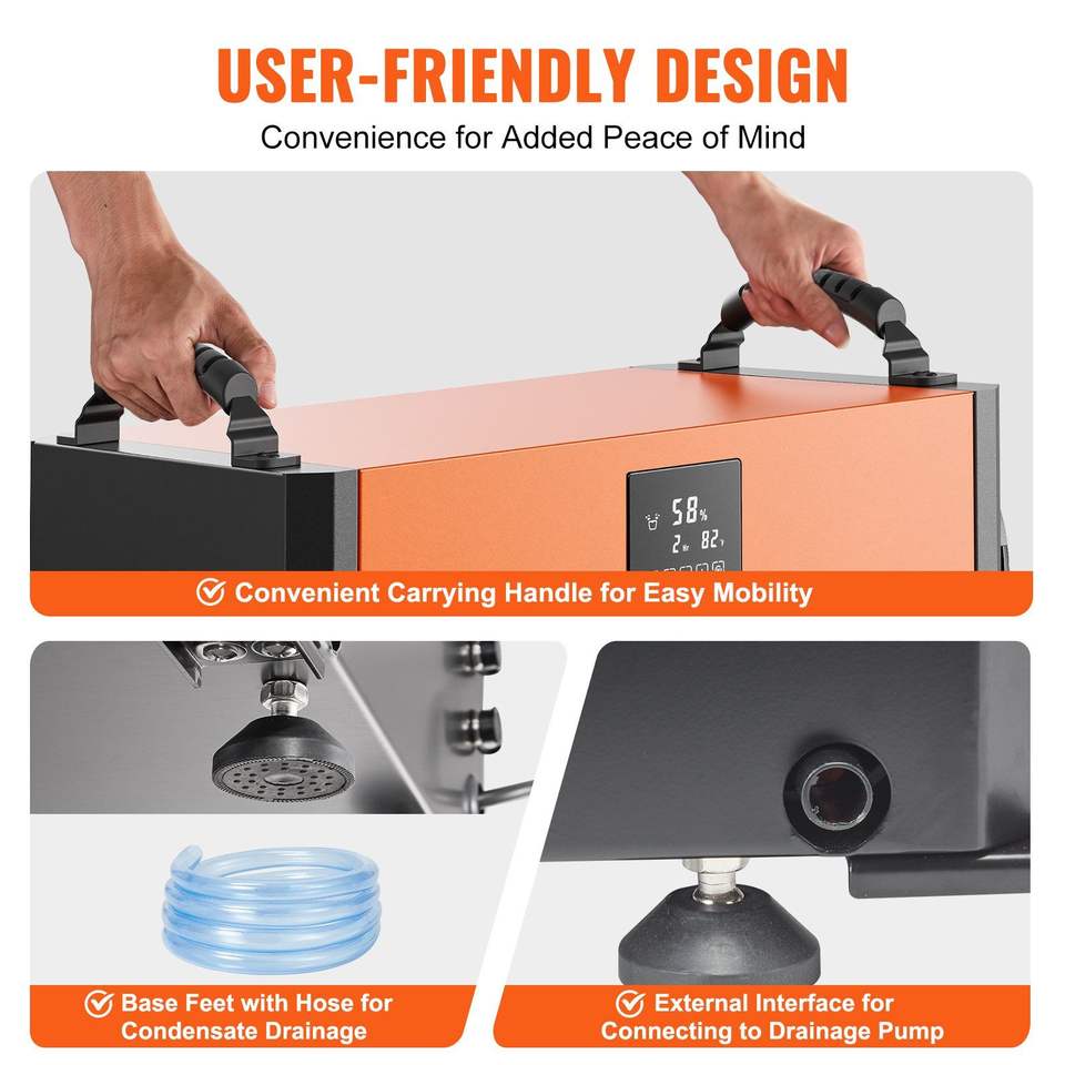 เครื่องลดความชื้นเชิงพาณิชย์ขนาดใหญ่ 156 ไพน์ท์ สำหรับพื้นที่คลุมท้องดิน ห้องใต้ดิน โกดังสินค้า และสถานที่ทำงาน พร้อมท่อระบายน้ำ