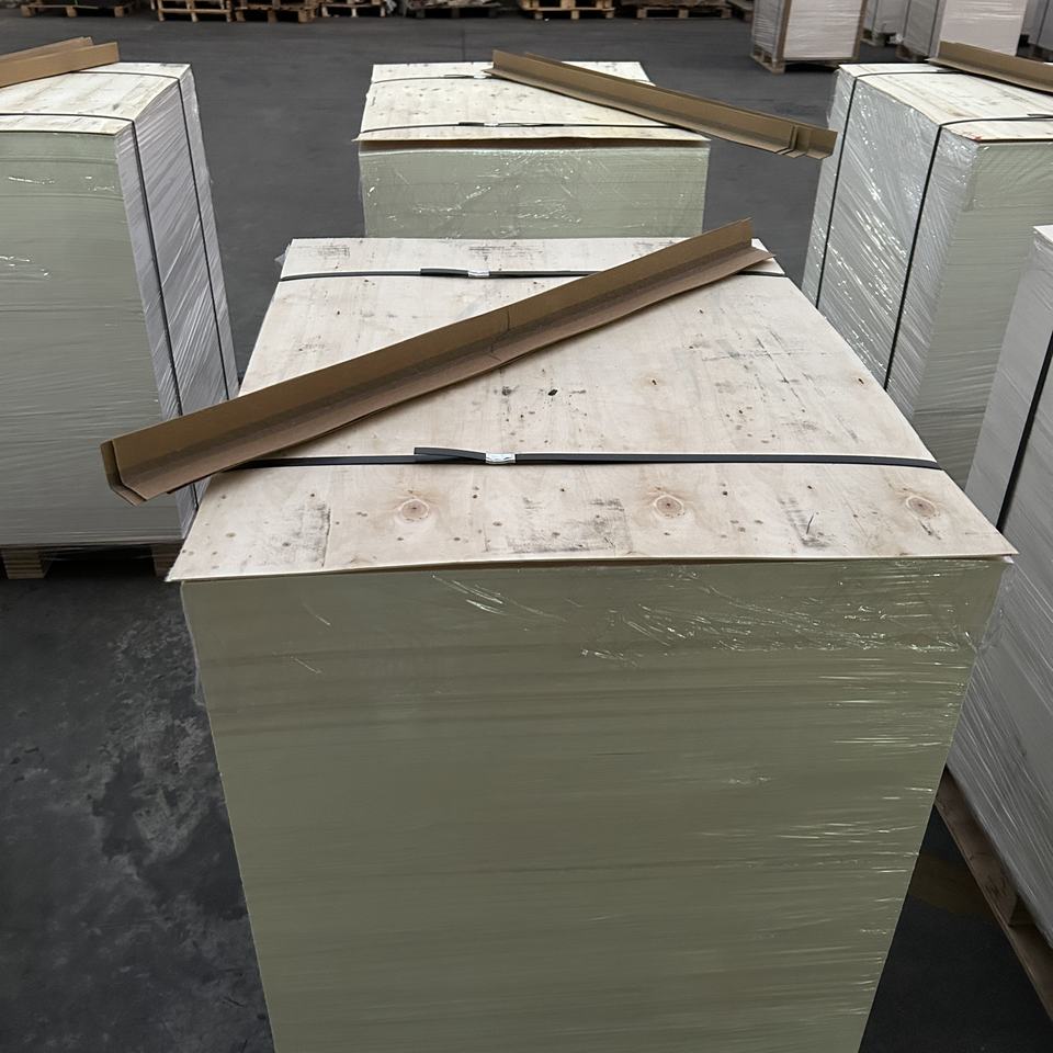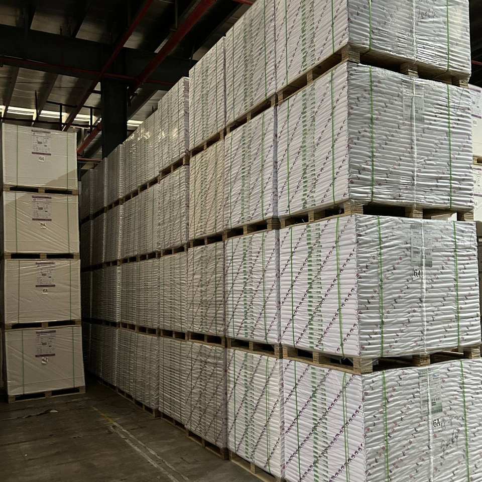 157gsm กระดาษสีขาว C2S couche แผ่นกระดาษศิลปะเคลือบสองชั้นสำหรับการพิมพ์ที่ผลิตโดยบริษัทกระดาษสีขาวบรรจุบนพาเลท
