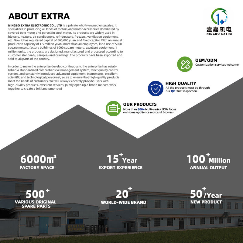 มอเตอร์พัดลมคอนเดนเซอร์แบบแปรงถ่าน AC แบบ Shaded Pole สำหรับตู้แช่แข็ง ตู้แช่เย็น รุ่น 15ES ยี่ห้อ Crosley