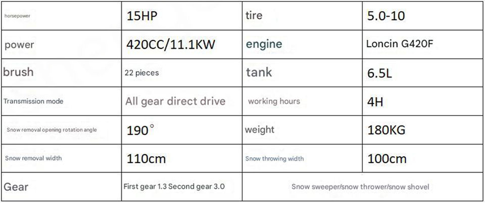 Snow removal width:110cm