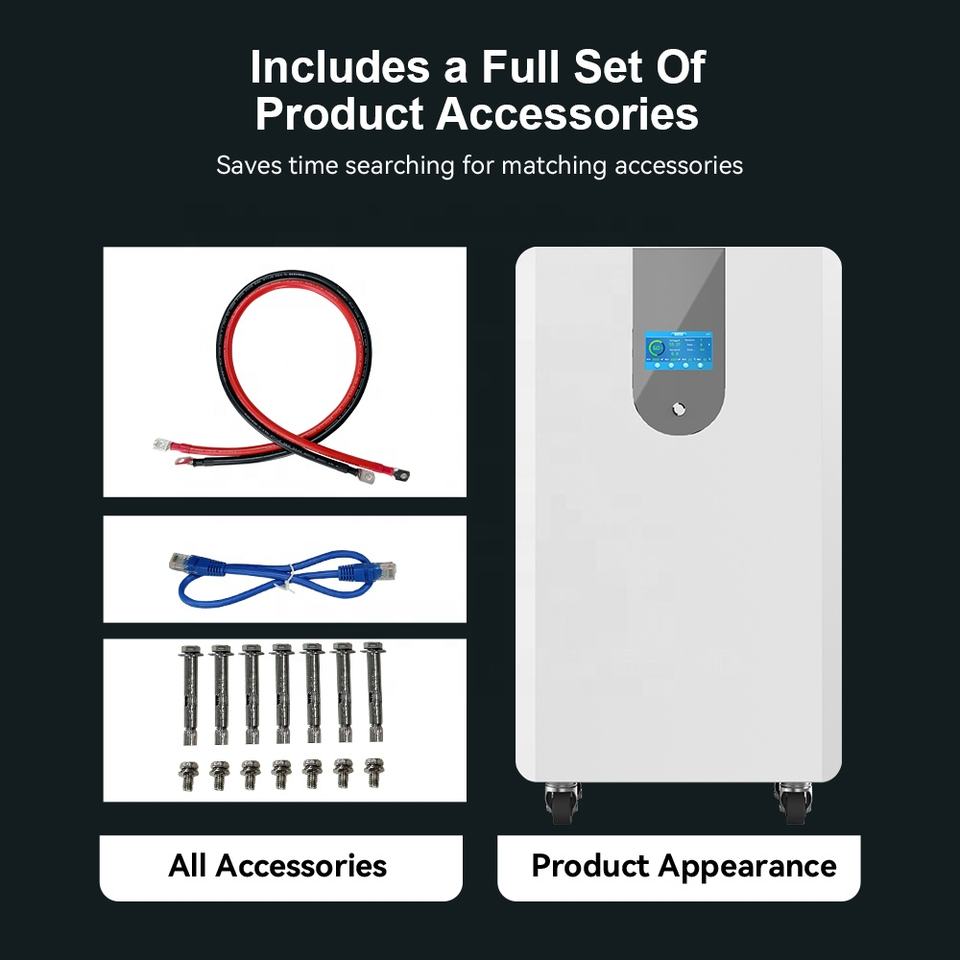 ระบบแบตเตอรี่เก็บพลังงานแสงอาทิตย์แบบไฮบริด 15 กิโลวัตต์ชั่วโมง 51.2 โวลต์ อินเวอร์เตอร์แบบแยกเฟส แบตเตอรี่ลิเธียมสำหรับเก็บพลังงานภายในบ้าน 300 แอมป์ชั่วโมง สำหรับใช้ในบ้าน