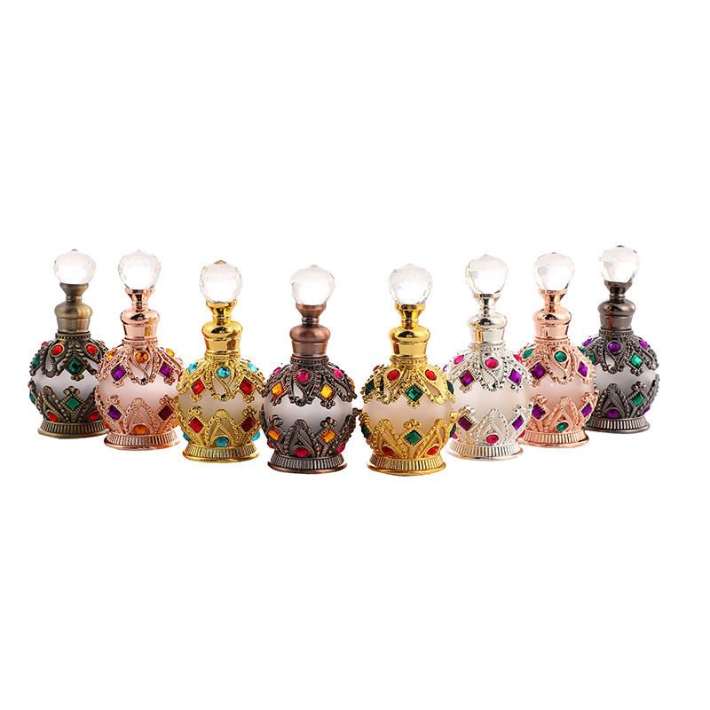 ขวดน้ำหอมโลหะรูปนกยูงขนาด 15 มล. 25 มล. แบบเติมได้สำหรับน้ำมันหอมระเหยและน้ำหอมอัตตาร์ ได้รับสิทธิบัตร