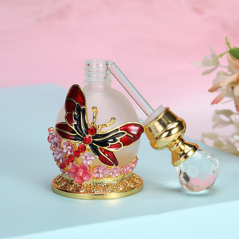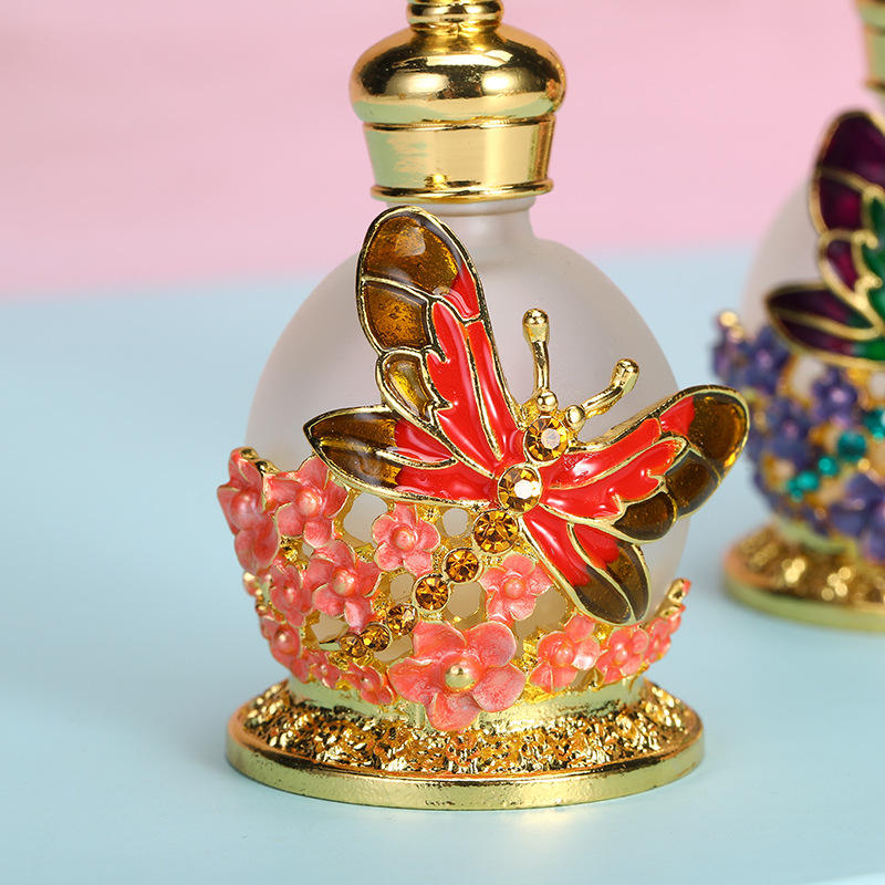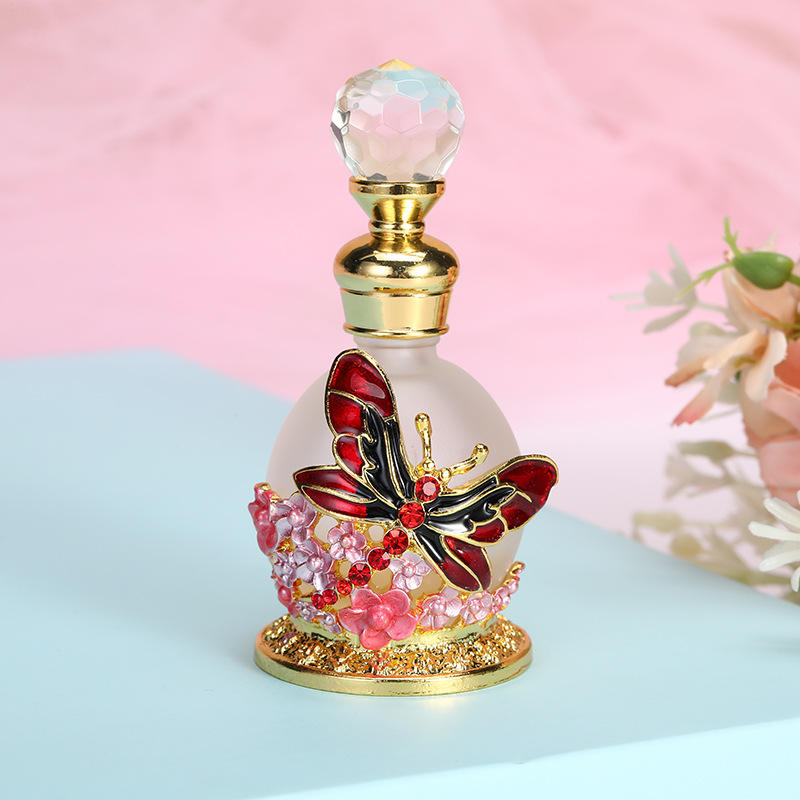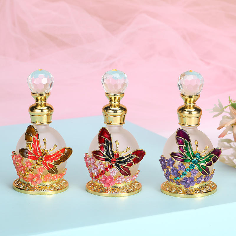 ขวดน้ำหอมแคมพานูล่าสีฟ้าเด็กผู้หญิงเบอร์ลิน15มล. สไตล์อาหรับภาพวาดแมลงปอผีเสื้อขวดน้ำมันลายจุด