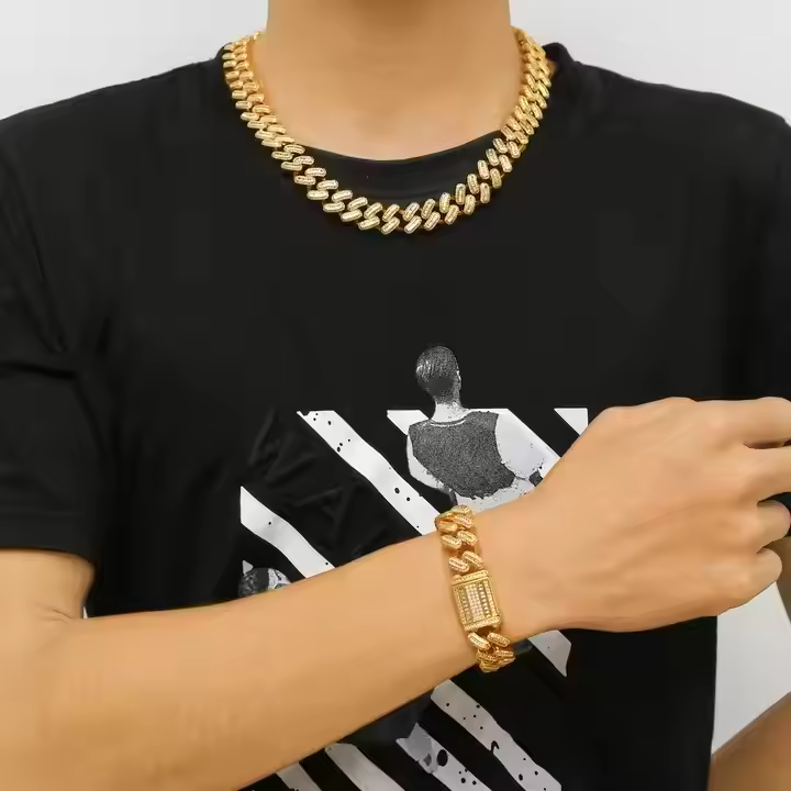 สร้อยคอโซ่แบบคิวบาขนาด16มม. 925เงินสีเหลืองทองการปลูกเพชรของขวัญแต่งงานสุดหรูมีสไตล์