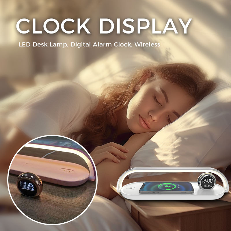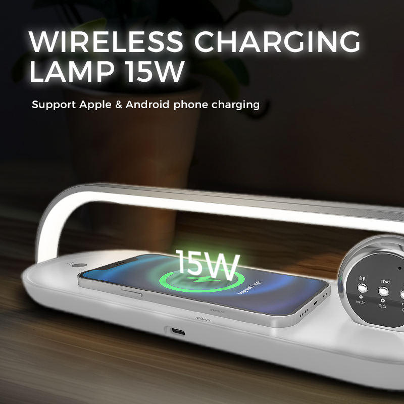 เครื่องชาร์จไร้สายแบบ3in1พร้อมหลอดไฟ LED/นาฬิกาปลุกที่ถอดออกได้