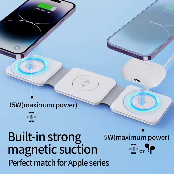 เครื่องชาร์จไร้สายแม่เหล็ก15W แบบพับได้15W แท่นชาร์จแม่เหล็ก3 in 1สำหรับ iPhone Pro สำหรับ iWatch สำหรับ airpod