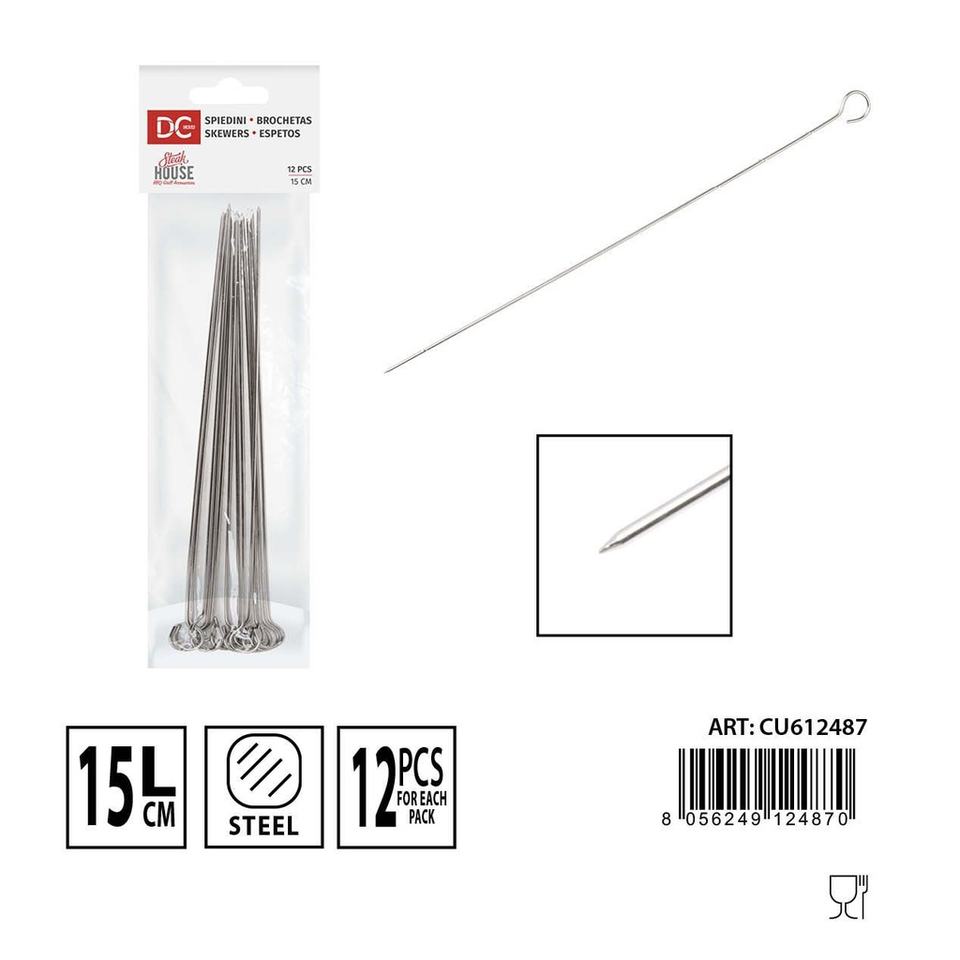 15cm Steel Skewers, 12 Pieces - Barbecue Utensils
