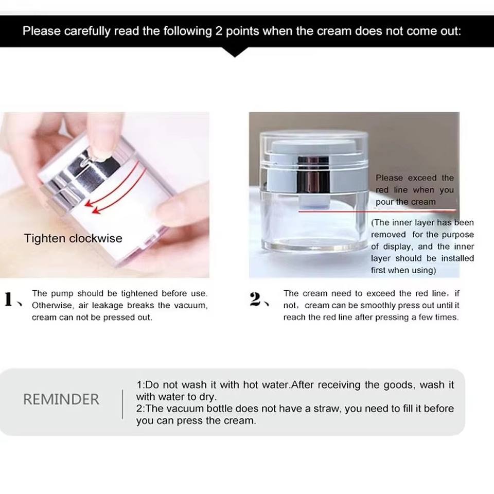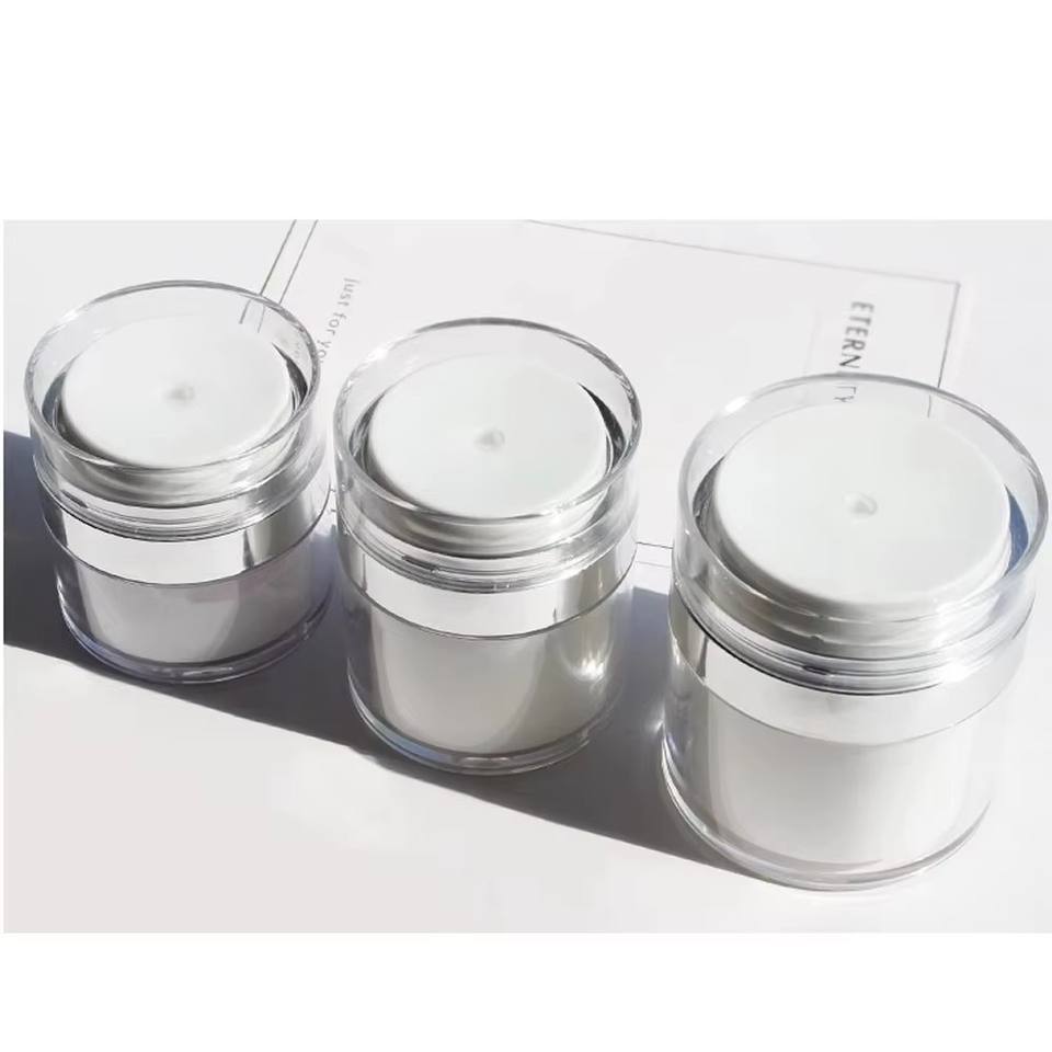 ขวดสุญญากาศเครื่องสำอางแบบสองชั้น 15 กรัม 50 กรัม หัวจ่ายแบบปากเป็ด ฝาเกลียว พลาสติก PP สำหรับครีม/ครีมกันแดด/ครีมบำรุงผิว